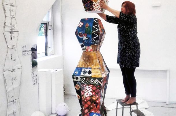 • 2019. Titel: SPIRA . Betong skulptur klädd i glasmosaik, 3 m hög.(vid museet) Uddevalla