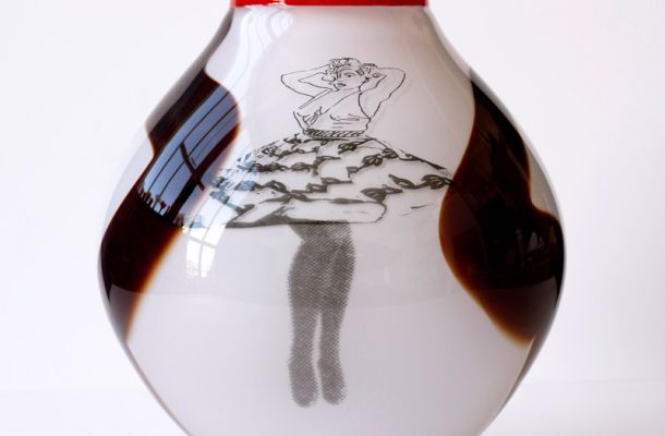 Kroppslighet och rum, att omforma en miljö som människor snabbt passerar, med berättelser i form och färg som berör dom, är en utmaning som jag tycker om. Jag arbetar ofta med bild dekaler som jag sätter fast på glasämnen som senare blåses upp till nya former.