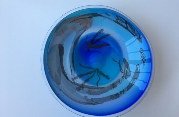 Jag har formgivit munblåst glas och även använt glas till projekt och utställningar. I mina offentliga projekt har jag arbetat med tekniker som screentryck på laminerat planglas, tex i bostadshus, tryck på gjutet glas som skulpturer till entréer och till offentliga miljöer.