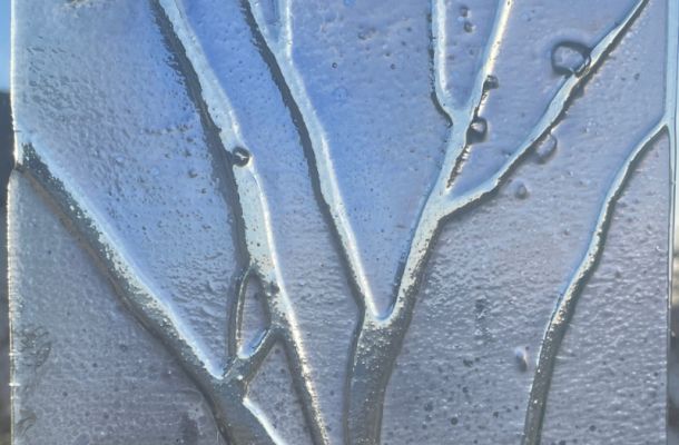 Jag bränner och formar glas i glasugn. Bitar som skurits ut smälts ihop med färgkross och bildar i olika ljusförhållanden spännande gestaltningar. Motiv och inspiration är ofta förnimmelser från naturen som vatten, träd, en väg eller ett landskap långt borta.