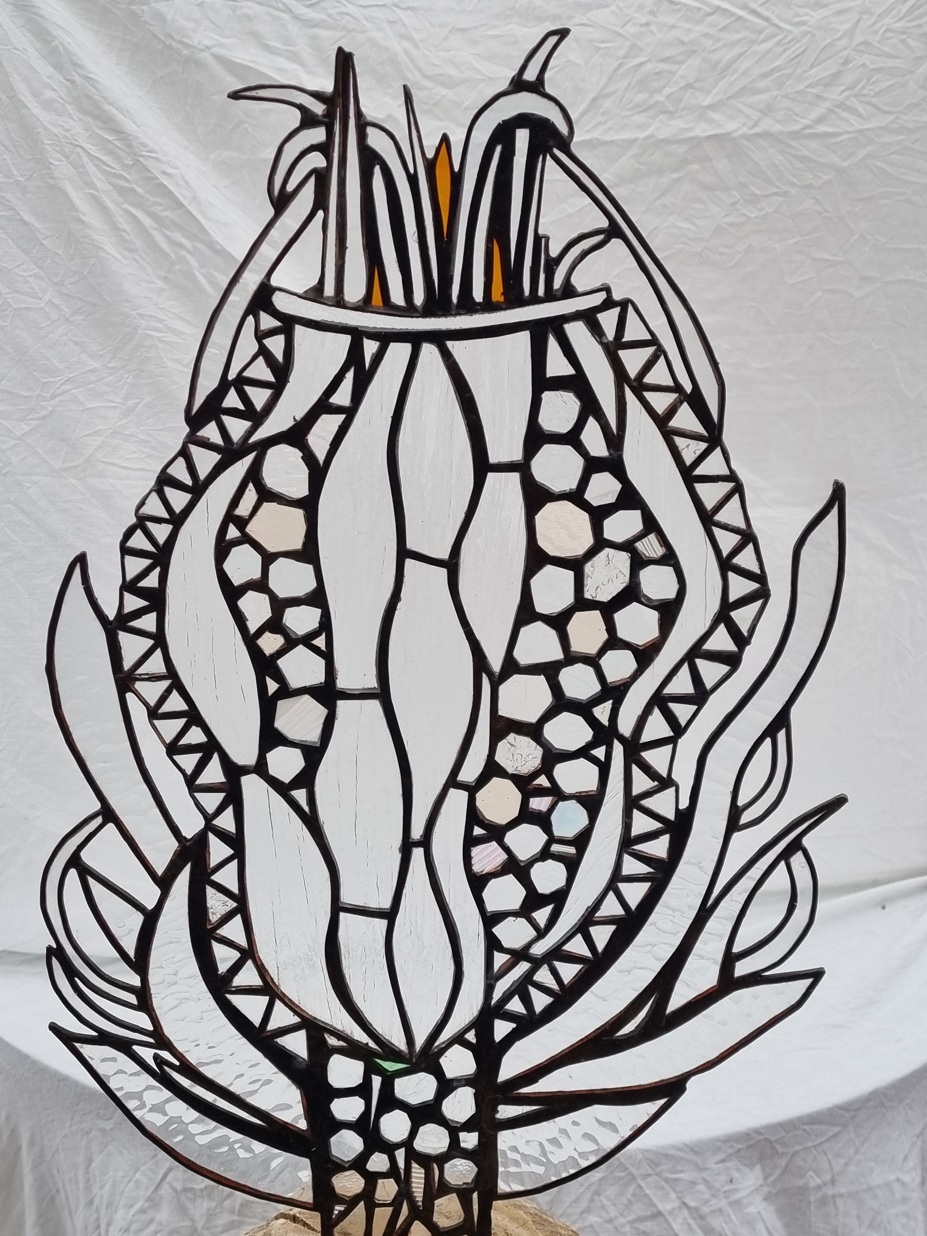 Efter att först jobbat med fönster och inredningsdetaljer, började jag experimentera. Skapa mera fritt, låta glaset berätta.