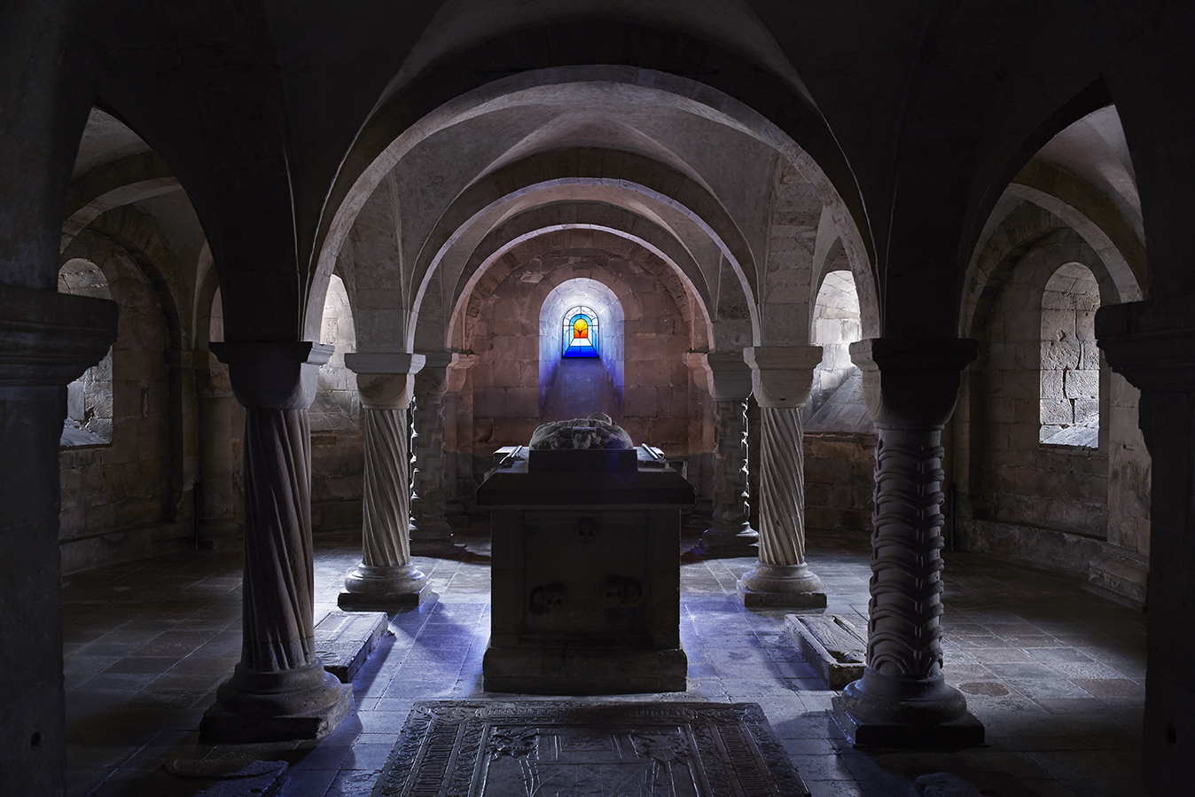 2023 Lund, kryptan Lunds domkyrka, konstglasfönster