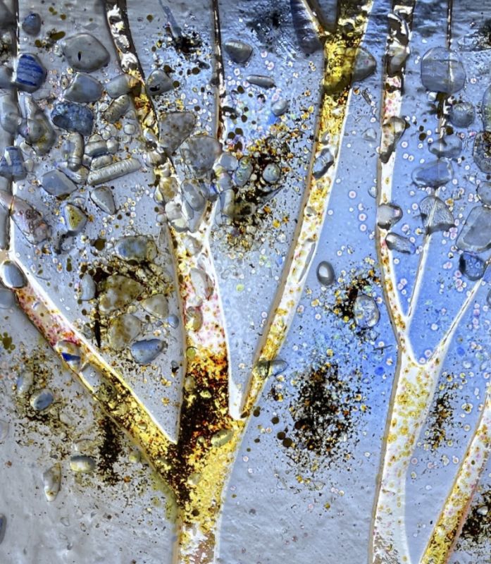 Ulla utforskar ljus och färg i glas och akvarell med motiv från naturen, som vatten och landskap, som förändras med dygnets ljus.