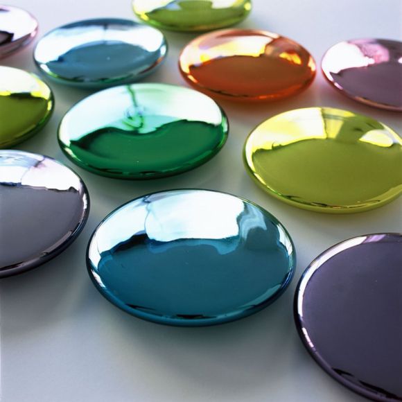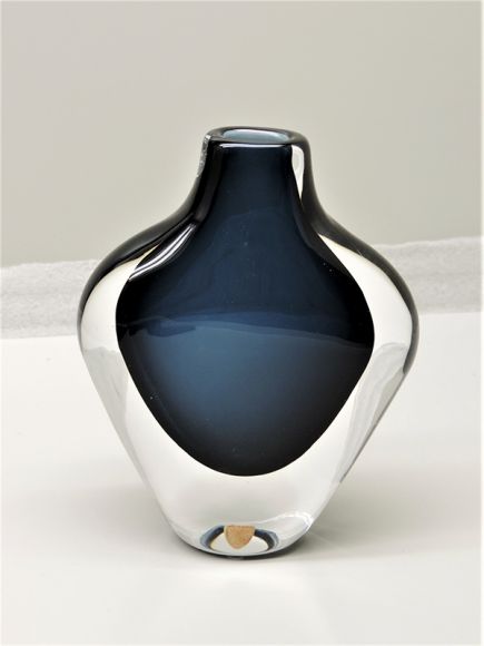 Teknik: Slipad och polerad färgtapp av uranglas limmad på en polyeder av optiskt glas. År: 1984 Design, utförande och foto: Anna Carlgren